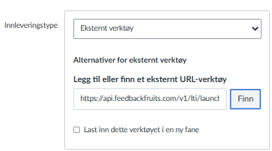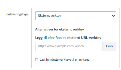 N? ligger lenken til det eksterne verkt?yet inne i feltet for innleveringstype