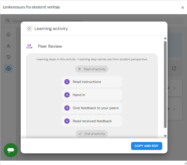 - Her kan du ogs? velge ? f? FeedbackFruits opp i fullskjerm eller i eget vindu ved ? trykke p? ikonet ved siden av EDIT-knappen